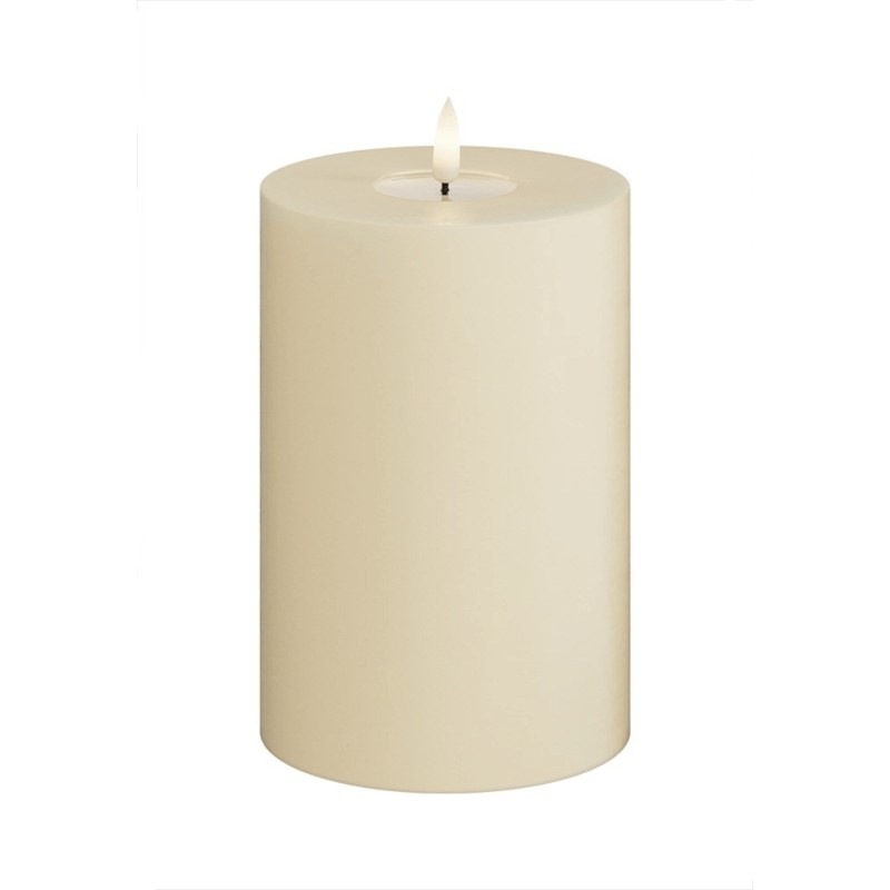 Skapa en varm och inbjudande stämning med detta stilrena LED-blockljus från DeluxeHomeart. Ljuset har en realistisk design med en förstärkt topp och WETLOOK™-effekt, vilket ger ett äkta utseende. Utrustat med den patenterade 3D REAL FLAME™-tekniken för en verklighetstrogen ljuslåga. Färg: Cream Material: Paraffinvax och resin Mått: 10 x 15 cm (exklusive flamman på 2 cm) Batteri: 3 x AA (ingår ej) Batteritid: 500+ timmar