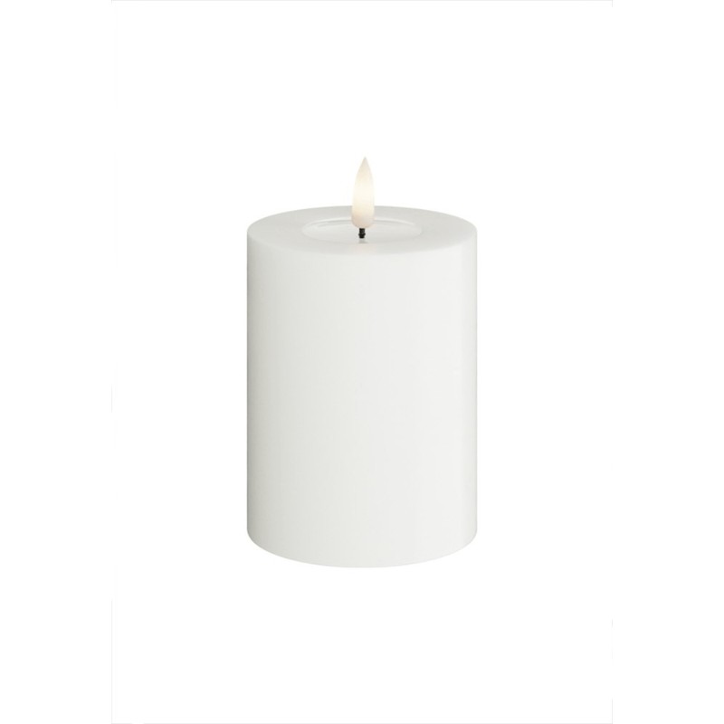 Skapa en varm och inbjudande stämning med detta stilrena LED-blockljus från DeluxeHomeart. Ljuset har en realistisk design med en förstärkt topp och WETLOOK™-effekt, vilket ger ett äkta utseende. Utrustat med den patenterade 3D REAL FLAME™-tekniken för en verklighetstrogen ljuslåga. Färg: Vit Material: Paraffinvax och resin Mått: 7,5 x 10 cm (exklusive flamman på 2 cm) Batteri: 2 x AA (ingår ej) Batteritid: 400+ timmar