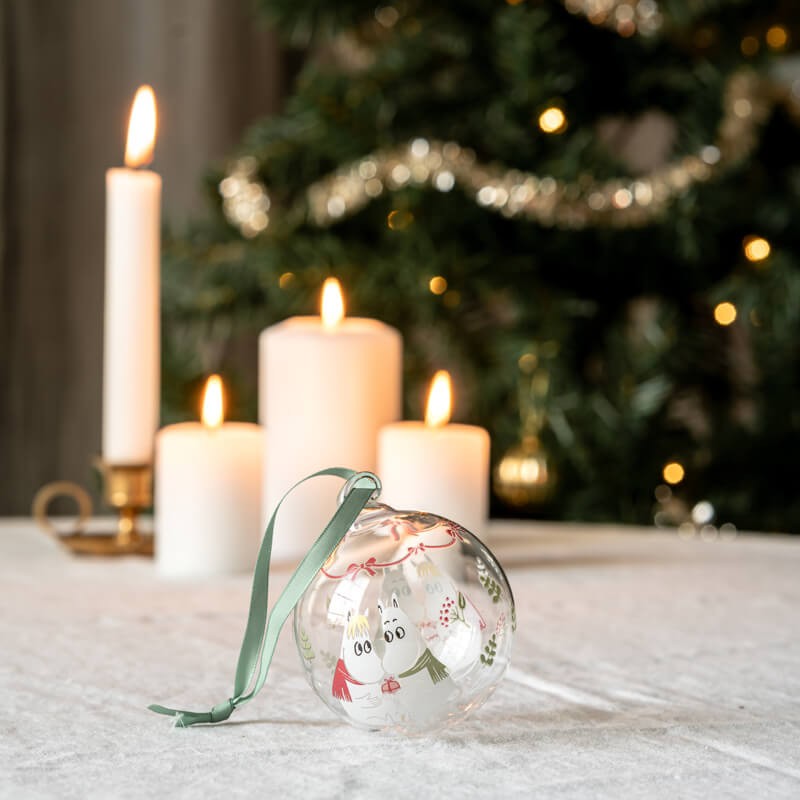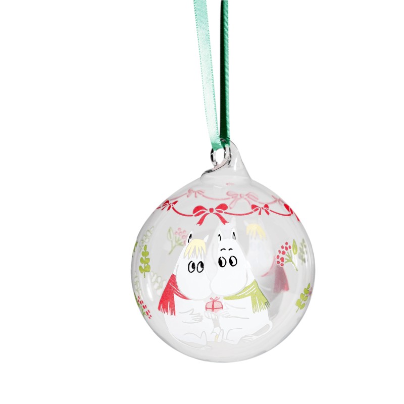 Dekorera ditt hem med en vacker Muurla Mumin dekorationskula. Glaskulan är fin juldekoration och till att hänga i granen eller varför inte i ett fönster.